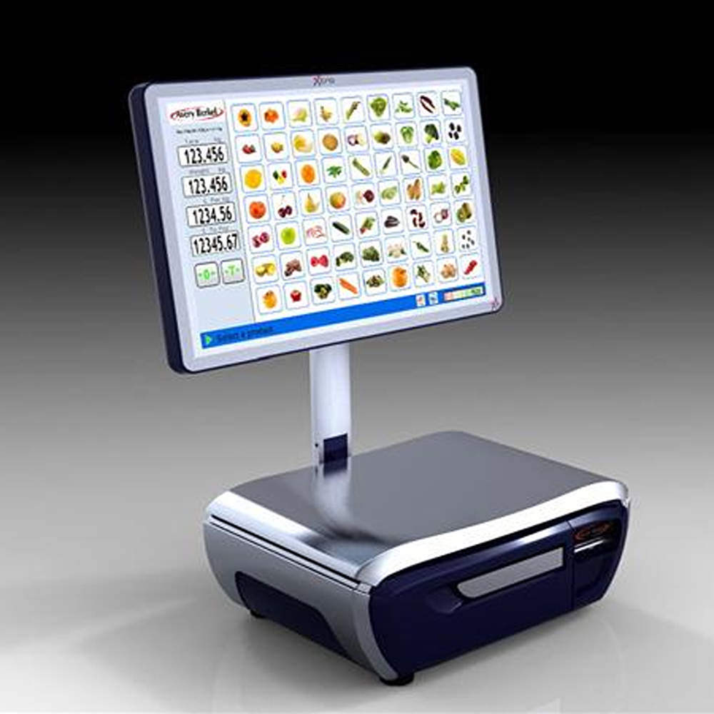 Kassaarvuti ja kaal ühes seadmes. Integreeritud makseterminal automatiseerib ostusumma kassakaalu ja terminali vahel.